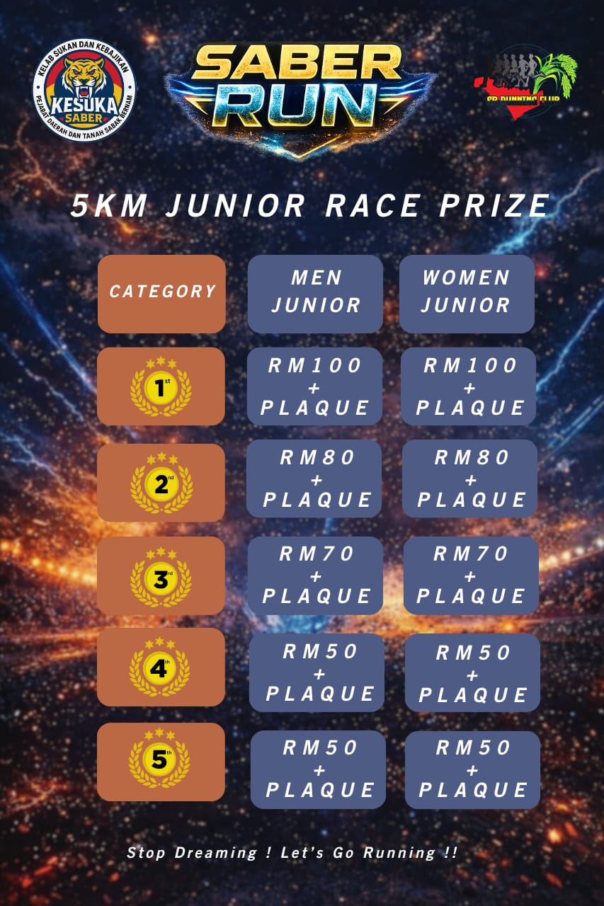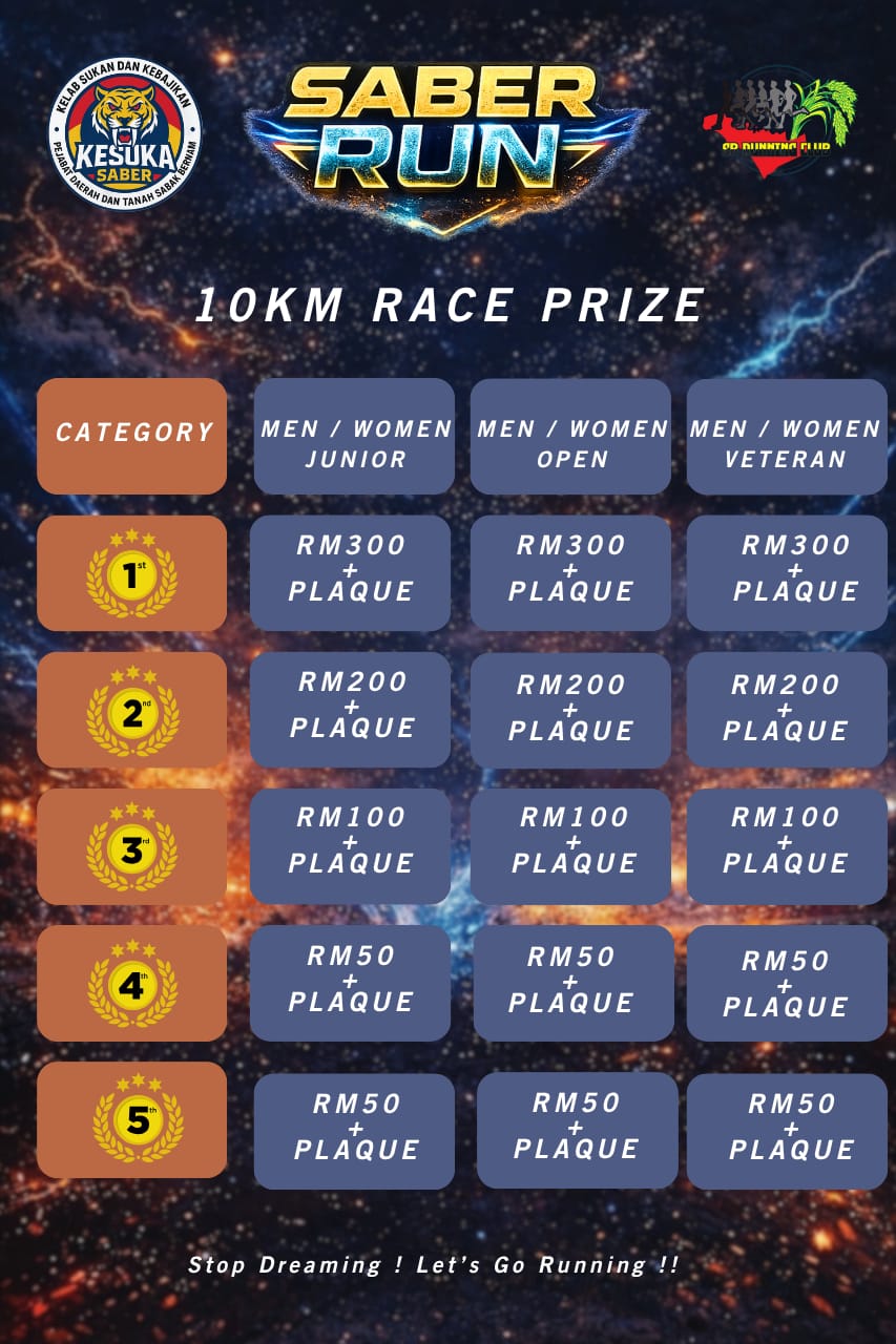 - JUNIOR/OPEN/VETERAN 10KM 6:45pagi